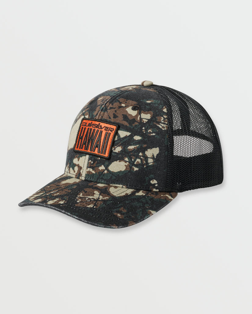 Our 6 panel camo trucker with Hawaii patch artwork blends outdoorsy style with a tropical twist. This lightweight, breathable polyester-cotton blend features an adjustable snapback closure, perfect for sunny adventures. Featured here in the Camo colorway.