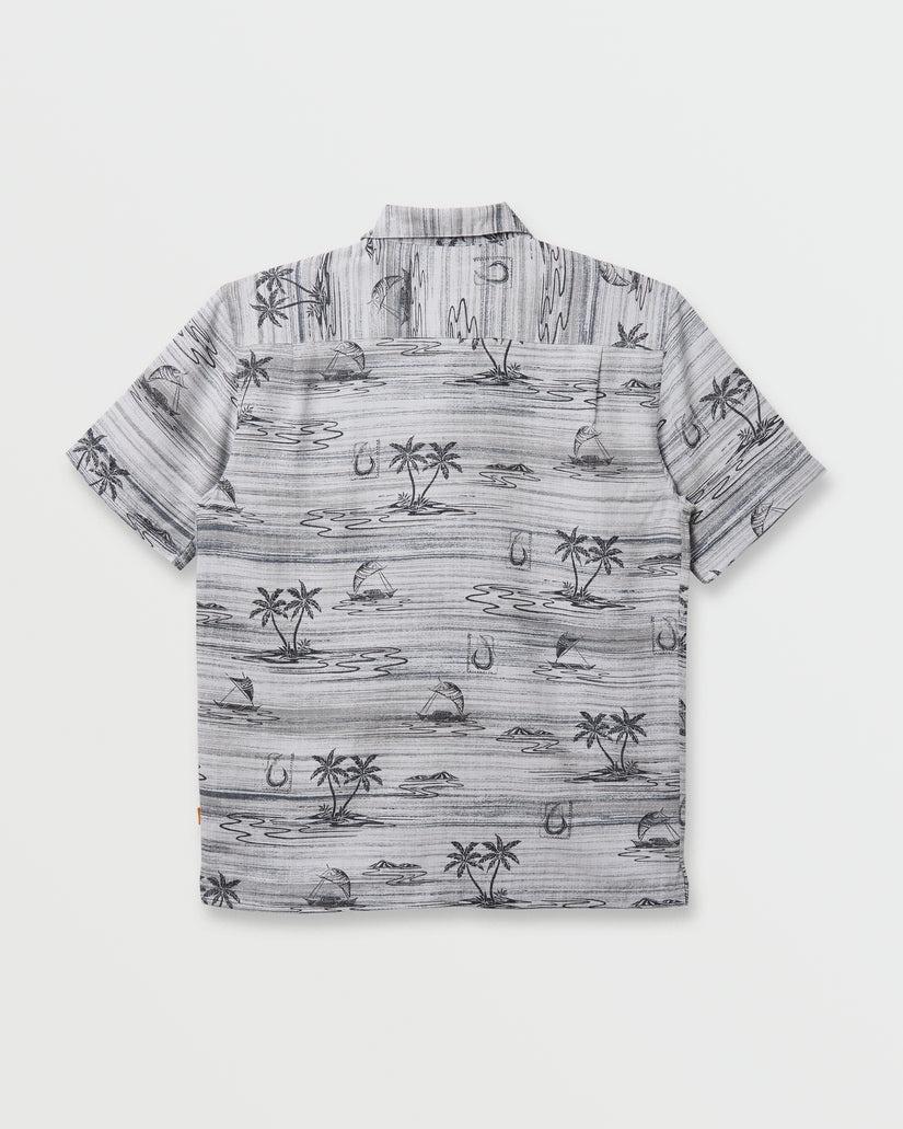 Our Island Daze woven short sleeve shirt features a scenic, all-over print and a soft, lightweight fabric composition that's garment washed for exceptional comfort. With its short sleeve silhouette and relaxed comfort fit, it's perfect for beach days or warm-weather adventures. Featured here in the Phantom colorway.