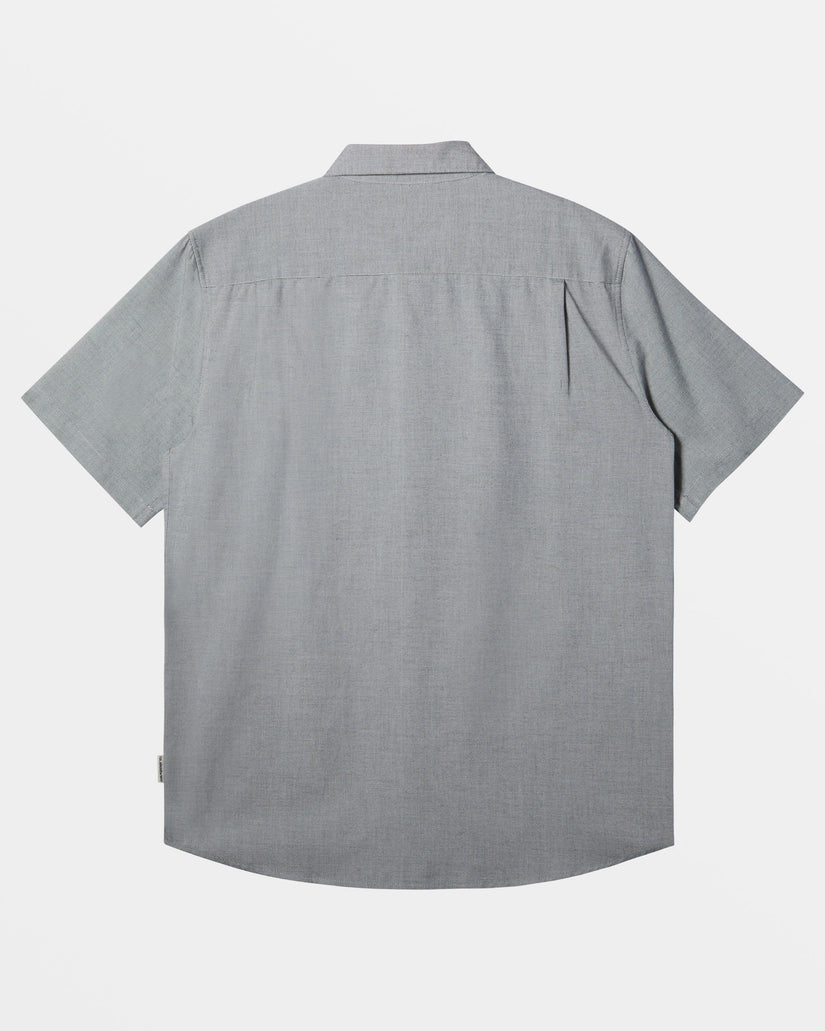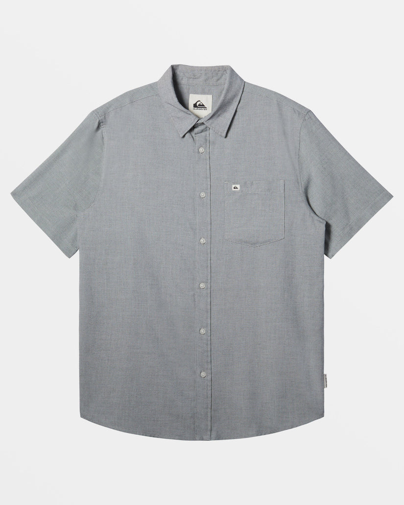 Experience ultimate comfort with the Shoreline Short-Sleeve Woven Shirt from Quiksilver. Crafted from a blended cotton weave fabric, this shirt features a regular fit, classic collar neck, short sleeves, single chest pocket, button closure, and scalloped hem. Branding is supplied through the Quiksilver woven label on the chest pocket and side seam. Featured here in the White Marble Heather colorway.