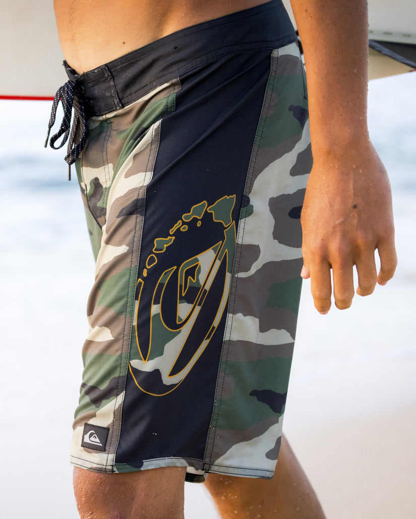 Surf's up! Our Surfsilk Hi Islands Arch 19" Boardshorts fuel your beach adventures with 4-way stretch and partially recycled fabrics. Inspired by Hawaii's island vibes, this flexible boardshort in an Arch silhouette and 19" length keeps you stylishly mobile for shredding waves or lounging shoreside. Featured here in the Camo colorway.