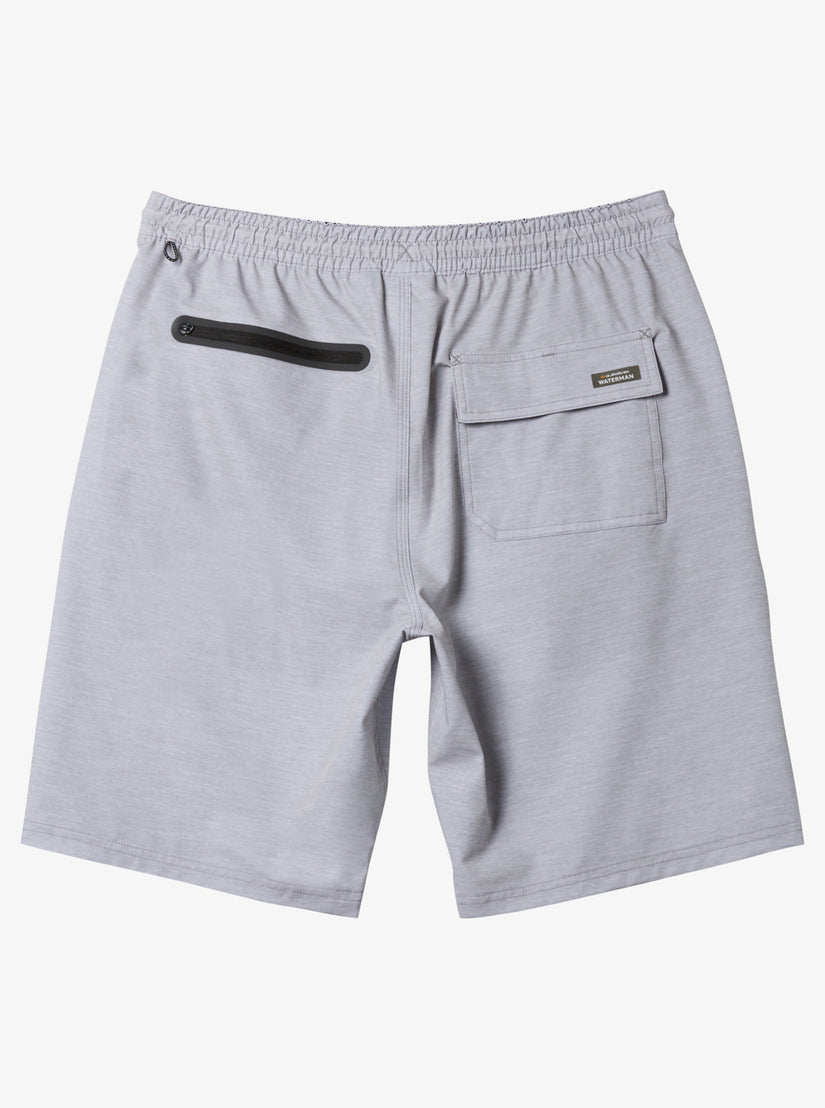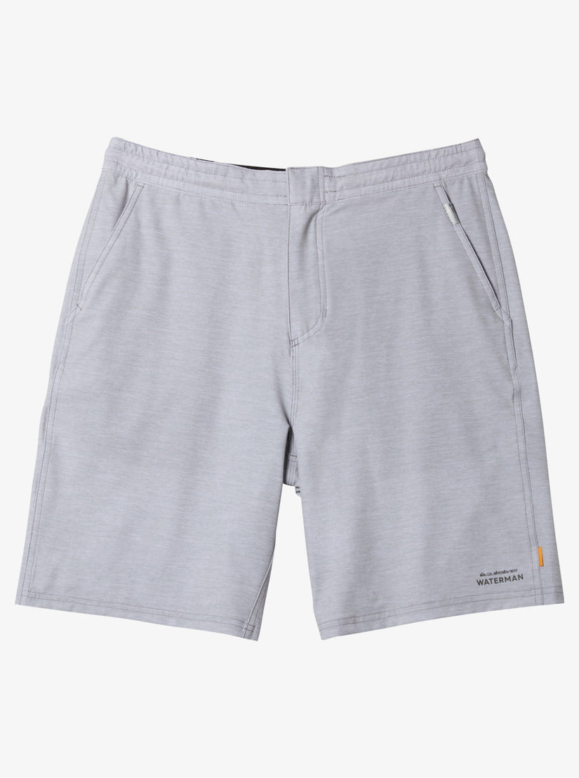 Cover all your bases with the Waterman Suva Amphibian 19" Hybrid Shorts. These all-in-one men's trunks are designed in quick-drying, 4-way stretch REPREVE surf fabric, adding side pockets and a drawcord to adjust the fit. Featured here in the Light Grey Heather colorway.